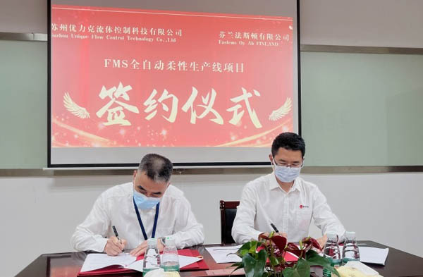 2022年5月17日,全球領(lǐng)先的柔性自動化解決方案供應(yīng)商Fastems(芬發(fā)自動化)宣布,已正式與孚杰集團(tuán)旗下子公司蘇州優(yōu)力克流體控制科技有限公司(以下簡稱優(yōu)力克)簽訂了合作協(xié)議——Fastems將為優(yōu)力克投建的新廠房提供一套集成6臺臥式加工中心與一個中央刀具庫的大規(guī)模柔性產(chǎn)線。從去年十一月份接觸,到今年四月份確立方案,短短5個月時間內(nèi)雙方即達(dá)成合作,開創(chuàng)了Fastems在中國最快簽單記錄。此項合作的達(dá)成,是優(yōu)力克又一次提高產(chǎn)品品質(zhì)與提升生產(chǎn)工藝的重要里程碑,是其在落實“智改數(shù)轉(zhuǎn)”戰(zhàn)略的關(guān)鍵一步,在疫情形勢嚴(yán)峻的當(dāng)前為提振行業(yè)發(fā)展信心帶來了積極促進(jìn)意義。