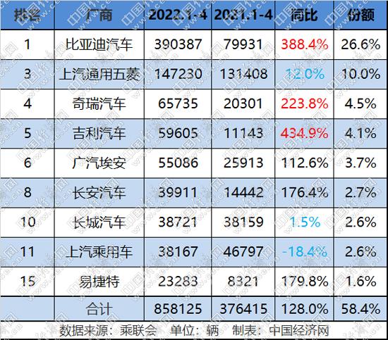 對(duì)比來(lái)看,比亞迪依然保持著今年以來(lái)的高歌猛進(jìn),4月銷量再度突破10萬(wàn)輛,前4月累計(jì)銷量已接近40萬(wàn)輛,同比增速均超3倍,進(jìn)一步穩(wěn)固國(guó)內(nèi)新能源及乘用車企的“雙料冠軍”。