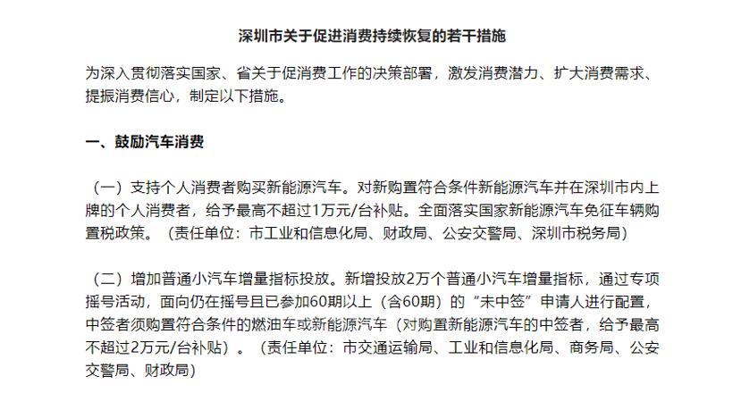為激發(fā)消費潛力、擴大消費需求、提振消費信心,5月23日,深圳市相關單位聯(lián)合印發(fā)《深圳市關于促進消費持續(xù)恢復的若干措施》,提到要“鼓勵汽車消費”。該政策自印發(fā)之日起實施,有效期至2022年12月31日。