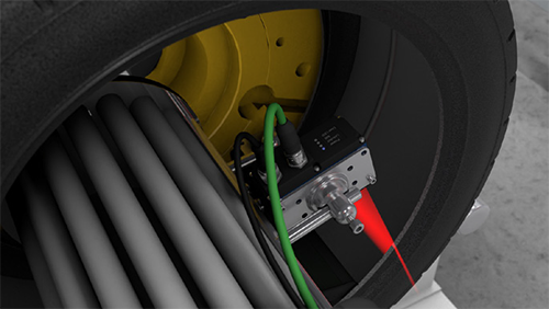 隨后,膠珠與泡沫板粘連,自動放置到輪胎上。膠珠的存在和連續(xù)位置,以及它們的高度、寬度和橫截面積,通過激光三角測量的二維/三維輪廓傳感器來測量。