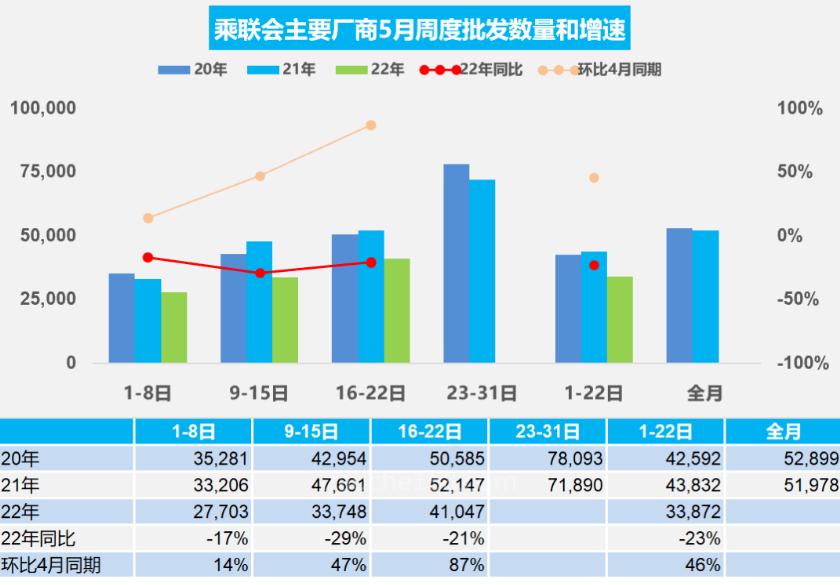 乘聯(lián)會(huì)5月周度批發(fā)銷量情況,圖片來(lái)源:乘聯(lián)會(huì)