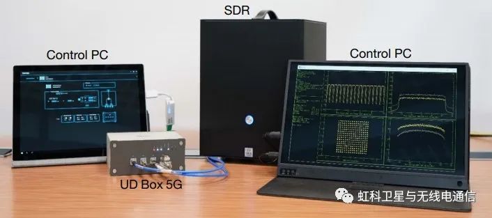 測試設(shè)置如圖所示,包括SDR、虹科TMYTEK UD Box 5G和控制PC。