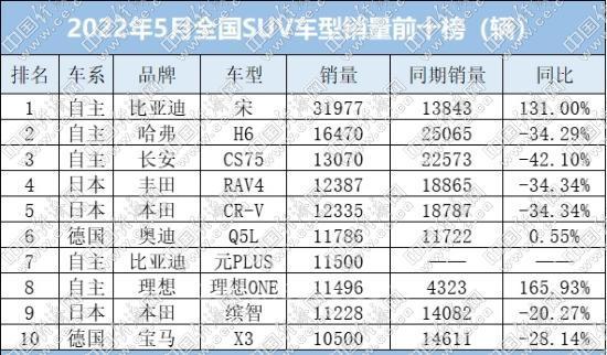 相較之下,傳統(tǒng)燃油熱銷車型就倍顯落寞。5月,排名榜單2-5名的都是“老面孔”,哈弗H6、長(zhǎng)安CS75、豐田RAV4、本田CR-V個(gè)個(gè)都是“燃油時(shí)代”的翹楚,但銷量下滑幅度皆超過(guò)3成,毫無(wú)亮點(diǎn)可言