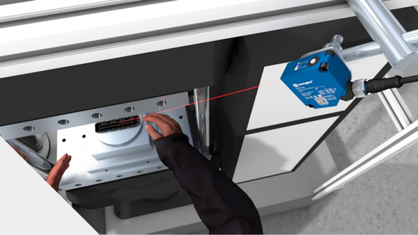 在半自動(dòng)人工作業(yè)臺(tái)上,必須在裝件過(guò)程中確保物料的位置正確。為此,在作業(yè)臺(tái)上方以一定角度安裝一個(gè)wintec遠(yuǎn)距離激光測(cè)距傳感器,如此可在傾斜狀態(tài)下可靠的識(shí)別深色或光亮的物體。