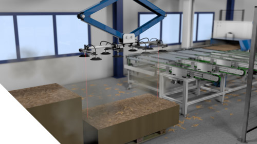 在木材加工行業(yè),裝在全自動(dòng)真空夾鉗上的 wintec 遠(yuǎn)距離激光測(cè)距傳感器可以測(cè)定夾鉗與板材的距離,外部光線或灰塵臟污以及反射熒光等材料對(duì)傳感器的性能沒有影響。