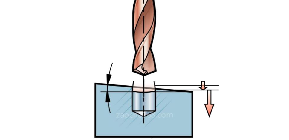 如果傾角小于等于10°,則在鉆入過程中將進(jìn)給降低至正常進(jìn)給率的1/3。如果傾角大于10°,則不建議鉆入。先在表面銑出一個小平面,然后再鉆孔。