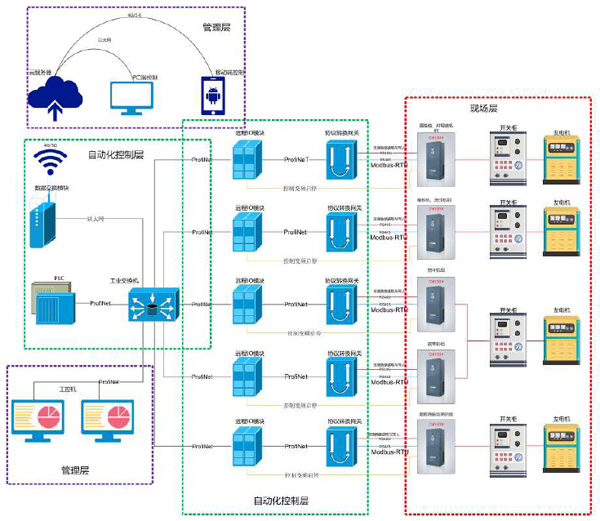 在設(shè)計上,合康新能的工程師團(tuán)隊將系統(tǒng)設(shè)計為經(jīng)典的三層架構(gòu):管理層、自動化控制層和現(xiàn)場層。滿足了整個制砂船對專用系統(tǒng)全面性和穩(wěn)定性的要求,實現(xiàn)了工藝流程控制、運(yùn)行、參數(shù)監(jiān)視、運(yùn)行數(shù)據(jù)記錄,以及報警、系統(tǒng)診斷和設(shè)備運(yùn)行狀態(tài)監(jiān)視等。