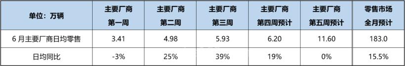 根據(jù)乘聯(lián)會最新周度分析數(shù)據(jù),6月1-19日全國乘用車市場零售93.5萬輛,同比去年增長24%(較上月累計(jì)同比增速提升42個百分點(diǎn)),環(huán)比上月增長43%;全國乘用車廠商批發(fā)94.4萬輛,同比去年增長34%(較上月累計(jì)同比增速提升57個百分點(diǎn)),環(huán)比上月增長52%。