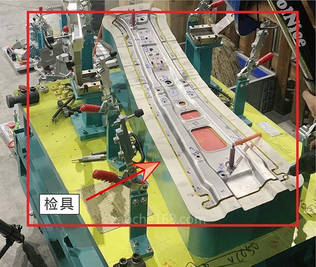 由于鈑金沖壓件過(guò)薄,可以先將其固定在檢具上;