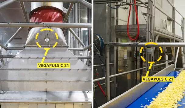VEGAPULS C 21儀表用于測(cè)量傳送帶上的薯?xiàng)l的高度