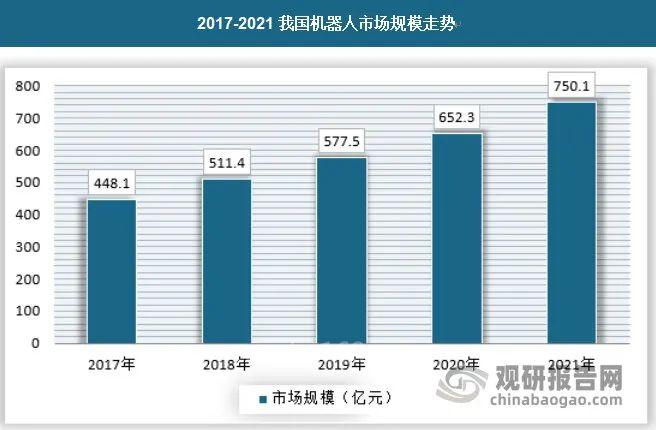 2021年,我國(guó)機(jī)器人市場(chǎng)規(guī)模大約為750.1億元,近年來保持良好的增速,不過總體增速在逐漸放緩。具體來看,工業(yè)機(jī)器人市場(chǎng)規(guī)模占比最高,達(dá)到66%,服務(wù)機(jī)器人達(dá)到25%,特種機(jī)器人約為9%。