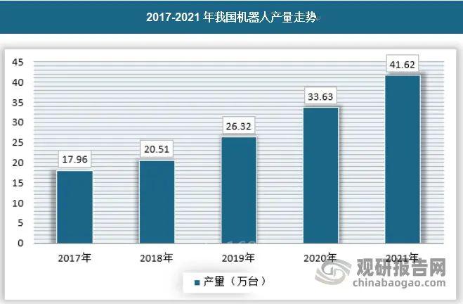 近年來,我國(guó)機(jī)器人產(chǎn)量持續(xù)增長(zhǎng),2021年國(guó)內(nèi)機(jī)器人產(chǎn)量約為41.62萬臺(tái)。