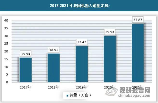 從銷量來看,2021年我國(guó)機(jī)器人銷量達(dá)到37.87萬臺(tái)。