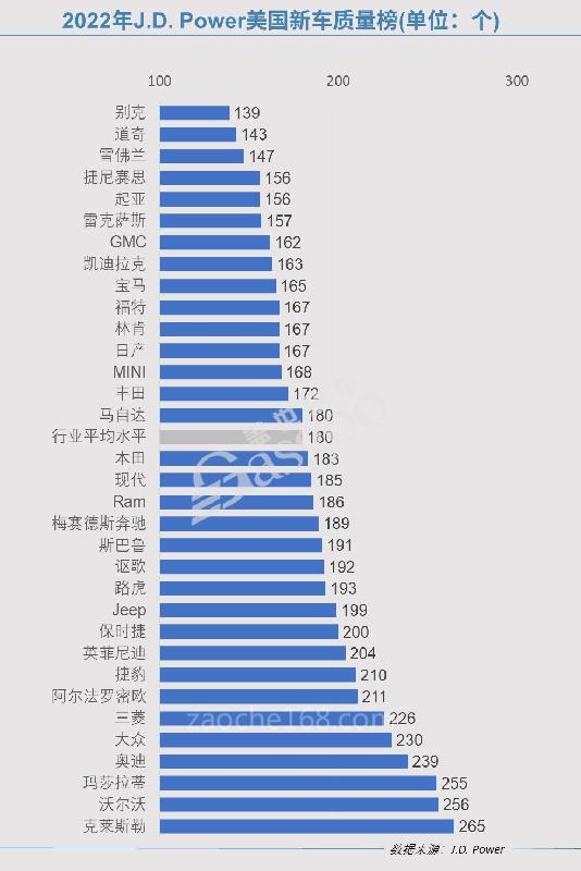 汽車咨詢公司J.D. Power最新發(fā)布的《2022年美國(guó)新車質(zhì)量研究》(2022 U.S. Initial Quality Study)顯示,美國(guó)新車初始質(zhì)量創(chuàng)36年來新低。由于供應(yīng)鏈問題、創(chuàng)紀(jì)錄的汽車價(jià)格和遠(yuǎn)程辦公環(huán)境,今年美國(guó)新車質(zhì)量問題數(shù)量較去年同期增長(zhǎng)了11%,平均每100輛新車就有180個(gè)質(zhì)量問題。