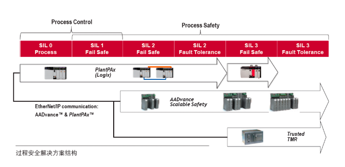 羅克韋爾自動化能夠?yàn)闄C(jī)械設(shè)備、過程生產(chǎn)等提供全方位的安全解決方案,可以滿足各種場合對 SIL2 和 SIL3 需求的解決方案: