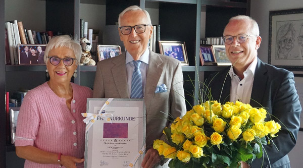 當(dāng)他在 2015 年將運營責(zé)任移交給他的兒子 洪斐立(Philip)(首席執(zhí)行官)和 女兒韓洪瑪莎(Maresa Harting-Hertz)(財務(wù)、采購和設(shè)施管理總監(jiān))時,浩亭已成為行業(yè)領(lǐng)導(dǎo)者。當(dāng)然,洪狄馬并沒有退居幕后坐享其成。他的常規(guī)工作地點仍然是位于埃斯佩爾坎普公司總部的辦公室。甚至他特別紀(jì)念日的那一天也沒有在家里的扶手椅上度過。他非常有興趣閱讀有關(guān)行業(yè)、技術(shù)發(fā)展和標(biāo)準(zhǔn)體系的所有內(nèi)容,除了和妻子洪瑪嘉玩拼字游戲,他很少愿意將閱讀放在一邊。即便玩拼字游戲,他也充滿激情。這不僅體現(xiàn)在他指導(dǎo)家族企業(yè)的業(yè)務(wù)發(fā)展上,還體現(xiàn)在他指導(dǎo)國際標(biāo)準(zhǔn)組織、技術(shù)和商業(yè)協(xié)會的工作和發(fā)展上。洪狄馬在德意志標(biāo)準(zhǔn)化研究所(DIN)和德國電氣電子行業(yè)協(xié)會擔(dān)任主席職務(wù),在德國展覽公司擔(dān)任監(jiān)事會副主席,并且是由前聯(lián)邦總理Gerhard Schr?der和Angela Merkel設(shè)立的技術(shù)和研究委員會的成員之一。他的杰出貢獻獲得了眾多獎項和榮譽,其中包括德國聯(lián)邦一級功績十字勛章、漢諾威萊布尼茨大學(xué)的榮譽博士學(xué)位和埃里?!す膨v堡獎。