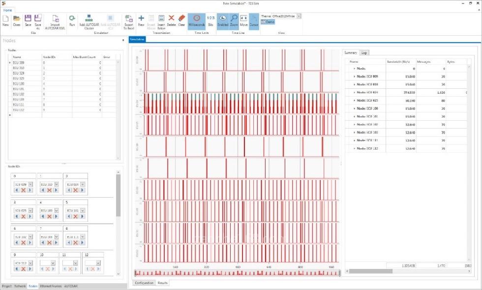 T1S Sim是一個模擬10BASE-T1S系統(tǒng)的軟件。該軟件不僅允許導入AUTOSAR系統(tǒng)描述,而且可以將CAN、CAN FD和FlexRay集群映射到10BASE-T1S,還可以計算出帶寬等性能統(tǒng)計數(shù)據(jù)并將總線流量進行可視化。