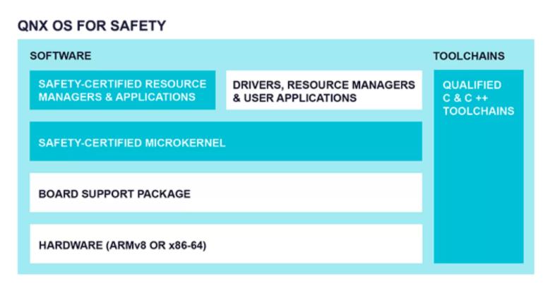 基于黑莓先進且安全的QNX Neutrino實時操作系統(tǒng)(RTOS)打造,QNX OS for Safety是一個完全符合POSIX標準并基于開放標準的操作系統(tǒng),嵌入式開發(fā)人員可借此構(gòu)建安全關(guān)鍵系統(tǒng)。此外,QNX OS for Safety已通過汽車行業(yè)最高功能安全標準ISO 26262 ASIL D級認證。