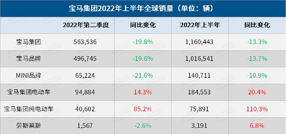 由于今年繼續(xù)受到東歐地緣政治局勢(shì)、新冠疫情蔓延和半導(dǎo)體供應(yīng)的持續(xù)瓶頸的影響,2022年上半年,寶馬集團(tuán)在全球范圍內(nèi)向客戶交付了1,160,443輛寶馬、MINI和勞斯萊斯汽車,同比下降13.3%。不過(guò),得益于其純電動(dòng)車型非常受歡迎,寶馬集團(tuán)上半年在全球范圍內(nèi)共售出75,891輛寶馬和MINI純電動(dòng)汽車,同比增長(zhǎng)110.3%。