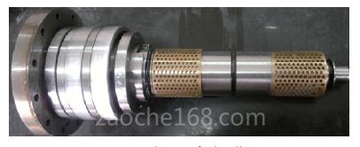 (1) 故障檢查 在檢查主軸不轉(zhuǎn)故障的過程中,電氣方面:測得電主軸的線圈燒壞,線圈委派外協(xié)單位繞制修復(fù),可以達(dá)到其性能要求。機(jī)械方面:通過分解電主軸,發(fā)現(xiàn)其轉(zhuǎn)子軸由軸Ⅰ和軸Ⅱ兩部分連接組成。故障點(diǎn)如下:①軸承沒有預(yù)緊。②軸Ⅰ端部內(nèi)六角圓柱頭螺釘松動(dòng)。③空心軸內(nèi)壁磨損。④軸套破裂。⑤調(diào)節(jié)螺母研死。
