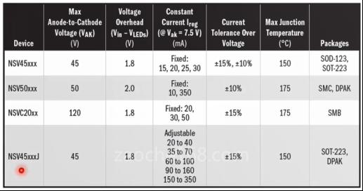 這是在簡(jiǎn)單車燈應(yīng)用中的高性價(jià)比方案,設(shè)計(jì)人員可根據(jù)下表的關(guān)鍵參數(shù)為應(yīng)用匹配最適合的器件。這些LED恒流調(diào)節(jié)器在寬電壓范圍內(nèi)提供恒定的電流,從而實(shí)現(xiàn)恒定的亮度。高溫條件下,負(fù)溫系數(shù)可保護(hù)LED。