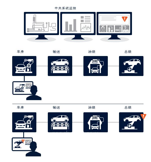 當國際歌劇院的窗簾后面鈴聲響起,樂隊指揮大師在掌聲中走到看臺,所有樂隊隊員在其組織下演奏出美妙的交響樂。在汽車生產(chǎn)系統(tǒng)的中央控制系統(tǒng)中,zenon軟件平臺同樣在承擔這一重要的角色。