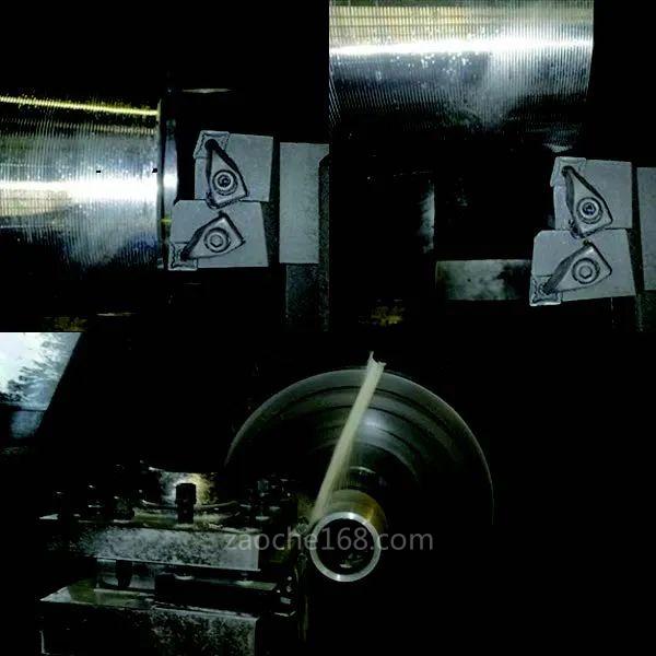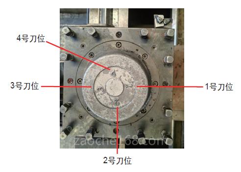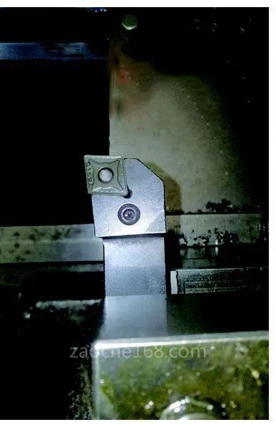 用新設(shè)計的復式組合刀具進行試加工,可加工的零件數(shù)量有較大提高,且刀具單價下降,批量生產(chǎn)中具有較高的經(jīng)濟價值。加工現(xiàn)場如圖7所示。