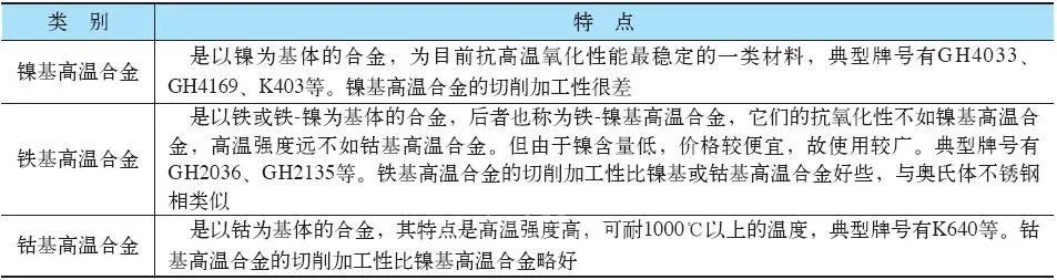 高溫合金的分類及特點(diǎn)如表1所示。