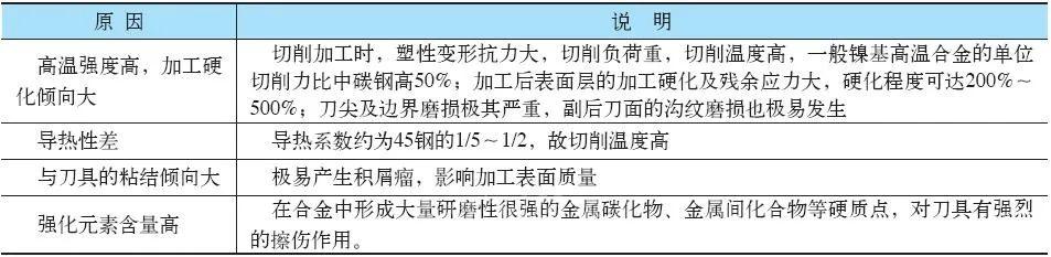 高溫合金難切削的原因如表2所示。