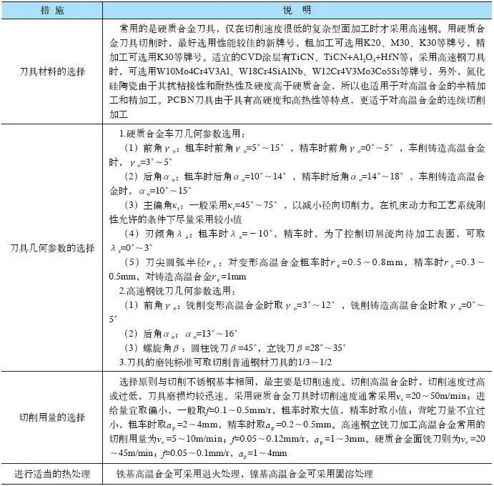 表3切削高溫合金的具體措施