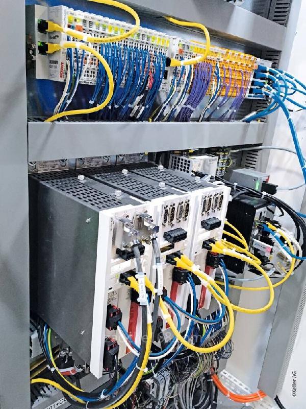 Florian Wernli 認(rèn)為,EtherCAT 在數(shù)據(jù)通信方面也有很大的優(yōu)勢(shì):“我們一直支持 EtherCAT 標(biāo)準(zhǔn),我們可以使用倍福及第三方供應(yīng)商提供的各種組件。另一個(gè)好處是,例如,在集成其它總線系統(tǒng)時(shí),我們可以從多樣化的診斷功能和開放性中獲益。”他認(rèn)為另一個(gè)重要的方面是可以通過(guò)各種選項(xiàng)減少布線工作:“我們不再需要鋪設(shè)每一根電纜,這對(duì)我們來(lái)說(shuō)是一個(gè)真正意義上的額外收獲。除了 CP-Link 4 和 OCT 之外,EtherCAT P 也為我們提供了額外的優(yōu)化潛力。在 I/O 方面,我們一直采用 EtherCAT P,即對(duì)于全自動(dòng)壓印機(jī),我們采用的是 EPP 系列 I/O 端子盒?!本唧w來(lái)說(shuō),這些 EPP 系列 I/O 端子盒包括 1 個(gè) EPP1004 4 通道數(shù)字量輸入端子盒,5 個(gè) EPP1018 8 通道數(shù)字量輸入端子盒、9 個(gè) EPP1809 和 2 個(gè) EPP1816 16 通道數(shù)字量輸入端子盒,以及 2 個(gè) EPP3184 4 通道模擬量輸入端子盒。