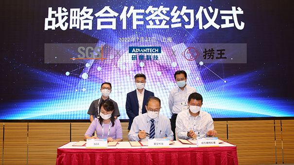 圖注:SGS(左)、研華科技(中)、撈王(右)三方簽署戰(zhàn)略合作聯(lián)盟協(xié)議