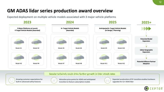 Cepton(賽瞳科技)此前宣布與通用汽車達成合作,并拿下業(yè)內最大的ADAS激光雷達量產(chǎn)訂單(排他性的獨家訂單),并在2023年起部署于多款不同車型。然而,這家公司在美股上市后,股價持續(xù)下跌,目前最新市值僅為2億美元左右(較最高點已經(jīng)下跌超9成),截至3月底的現(xiàn)金余額僅為4500萬美元。