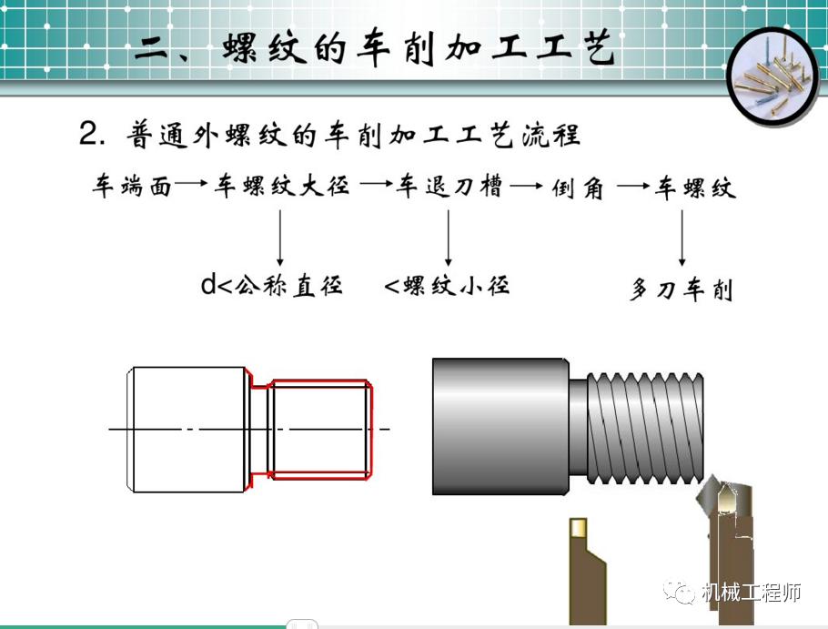 一般沒(méi)有指定牙型尺寸時(shí),就把螺紋牙的斷面做成正方形。車刀直線進(jìn)給加工矩形螺紋,按溝槽的深度(牙的高度)尺寸加工就行了。