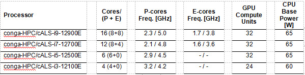 基于第12代英特爾酷睿臺式機(jī)處理器的conga-HPC/cALLS COM-HPC Client Size C模塊, 提供以下4種配置: