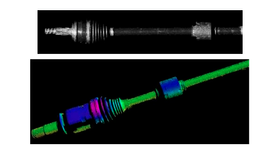 SICK一體式3D相機(jī)RulerXR150激光線方向與傳動(dòng)軸的軸線垂直,運(yùn)動(dòng)速度450mm/s,從左到右連續(xù)掃描整個(gè)軸體。通過(guò)3D視覺(jué)測(cè)量位置的高低差識(shí)別定位傳動(dòng)軸中的位置特征點(diǎn),計(jì)算軸中的護(hù)套位置,護(hù)套間距,減震圈,軸總長(zhǎng)等檢測(cè)項(xiàng)的距離值。提高了生產(chǎn)質(zhì)量及效率,為客戶(hù)提供更可靠、更高速、更穩(wěn)定的解決方案。