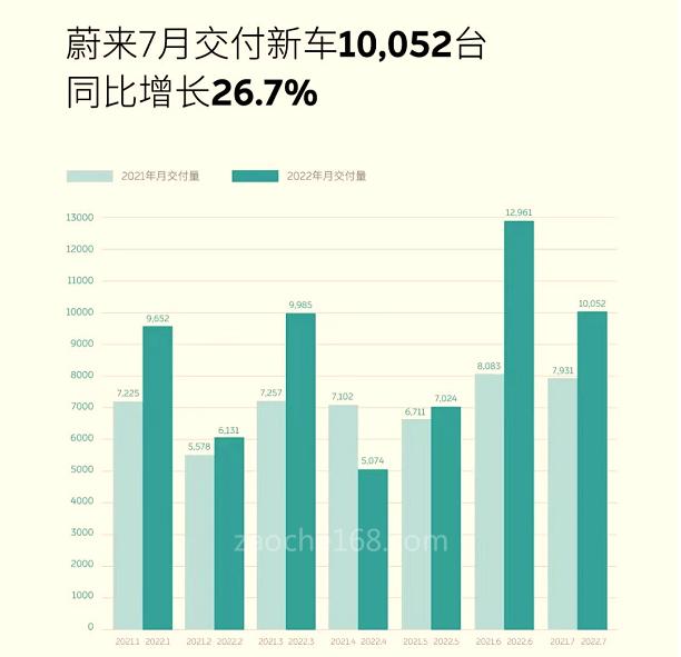 8月第一天,多家車企發(fā)布最新銷量數(shù)據(jù)。其中,蔚來7月交付10052輛,同比增長26.7%,這是今年內(nèi)第二次月銷破萬。不過相較6月的12961輛,環(huán)比下滑22.45%。