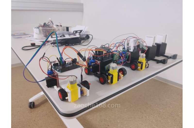 該團隊建立了一個帶有交叉路口和街道的道路網(wǎng)絡(luò),其中有多種替代仿真模式。一種是汽車試圖到達一個隨機生成的目的地,另一種是汽車需要像出租車一樣接載乘客。這些車輛附有小條碼,攝像頭會檢測并跟蹤條碼,而學(xué)生們開發(fā)的軟件可以預(yù)測汽車的目的地,發(fā)出指示,并引導(dǎo)車輛朝著正確方向前進。
