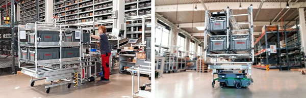 在此之前,所有這些運輸任務(wù)都是使用叉車和托盤搬運車進行的,必須由員工親自操作。為了處理運輸任務(wù),員工們經(jīng)常要暫停手頭的工作。因此,我們需要找到一種解決方案,以便員工有更多時間從事實際工作,并提高工作的人體工學(xué)性。