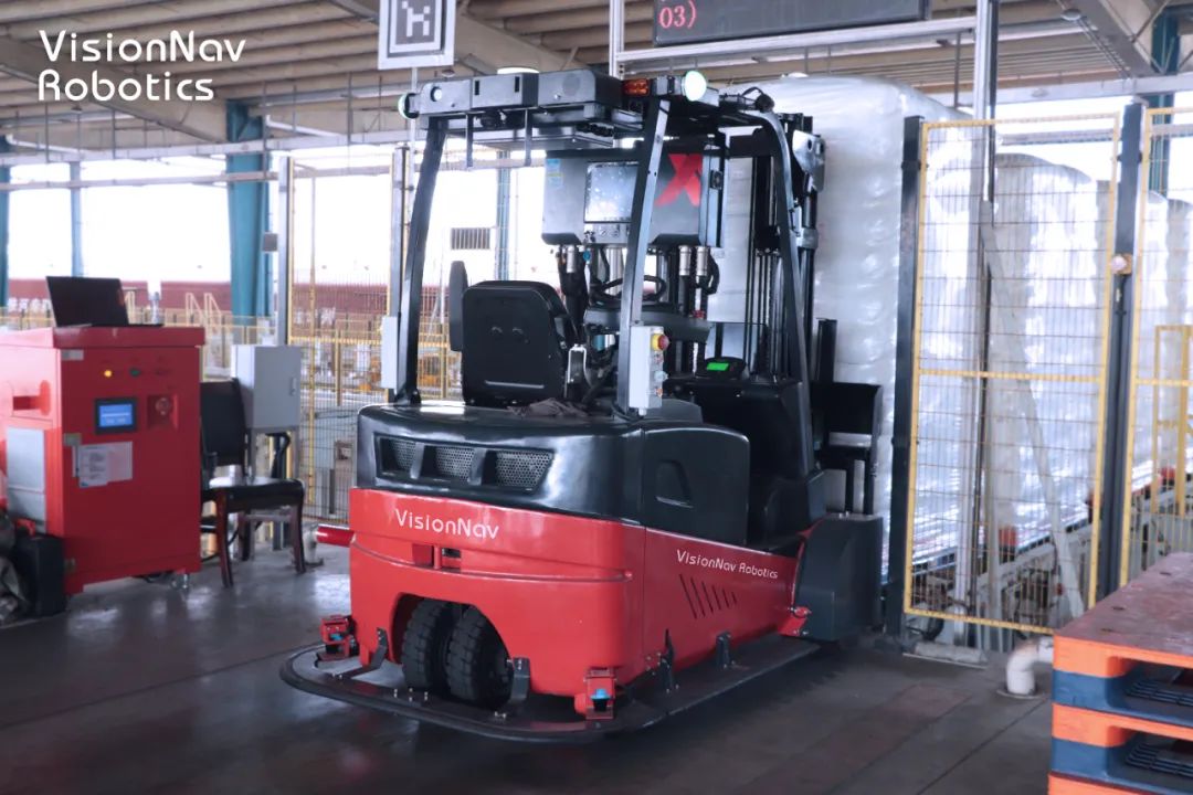 遇到室內(nèi)外復(fù)雜場景時(shí),VNE20無人叉車通過配置3D激光混合視覺導(dǎo)航SLAM,提取環(huán)境圖像信息,同步定位并創(chuàng)建自然特征地圖,精準(zhǔn)識(shí)別地面路況,如地面溝坎,凹凸不平的貨車車廂地板等;同時(shí)結(jié)合智能算法與仿真建模計(jì)算,沉淀項(xiàng)目數(shù)據(jù),從無人叉車行駛速度,加速度,貨叉舉升高度等方面進(jìn)行不斷調(diào)整優(yōu)化,最終得出裝車效率與安全雙優(yōu)方案,解決項(xiàng)目現(xiàn)場的復(fù)雜環(huán)境難題。