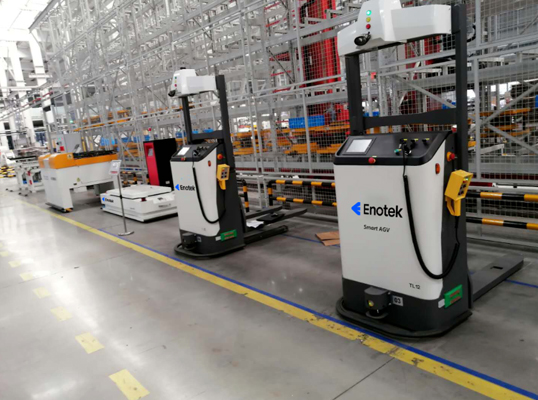 AGV不再局限于倉(cāng)庫(kù)內(nèi)的物料搬運(yùn),項(xiàng)目中將AGV大量運(yùn)用到了工廠內(nèi)的生產(chǎn)流程,原本需要人工或是借助半自動(dòng)化設(shè)備完成的搬運(yùn)作業(yè),現(xiàn)在全部都有AGV全自動(dòng)完成。