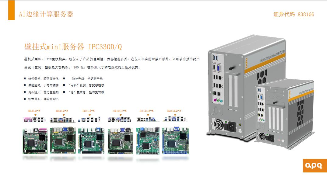 IPC330系列是一款穩(wěn)定可靠的Al邊緣計(jì)算服務(wù)器,適配所有ITX主板進(jìn)行緊湊設(shè)計(jì),壁掛式及桌面式安裝方式適用于各種使用場(chǎng)所。同時(shí)結(jié)合阿普奇模塊化設(shè)計(jì)理念,通過簡(jiǎn)單的模塊組合,結(jié)合擴(kuò)展卡轉(zhuǎn)接槽,可進(jìn)行自由靈活擴(kuò)展,形成不同接口、不同性能的多種產(chǎn)品,可廣泛應(yīng)用于通信、金融、電力、交通、醫(yī)療、工業(yè)自動(dòng)化等各領(lǐng)域。?