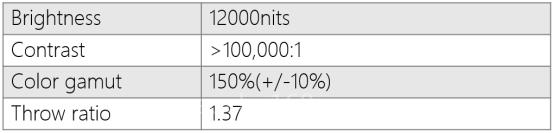 LBS所使用的光源為RGB三原色的激光二極管,因此在混光后所投影出來的影像色彩會(huì)更加的豐富,能表現(xiàn)出非常廣的色域,大于120%NTSC。 并且激光光源在投放影像時(shí),黑色部分可以借由完全關(guān)閉激光達(dá)到,因此LBS的影像對(duì)比度可以達(dá)到非常高的比值,大于288200:1,且無光窗效應(yīng)。