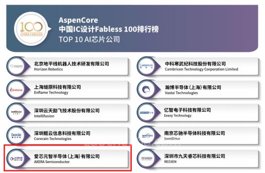 由AspenCore全球分析師團(tuán)隊(duì)傾力打造的2022中國IC設(shè)計(jì)Fabless 100排行榜也同期發(fā)布,愛芯元智成功入選TOP10 AI芯片公司。