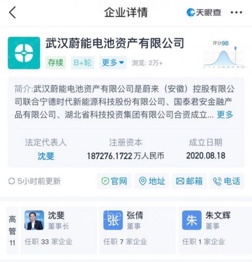 天眼查App顯示,蔚能公司法定代表人為沈斐,其同時(shí)擔(dān)任蔚來(lái)電源管理副總裁。2021年11月25日,蔚能的經(jīng)營(yíng)項(xiàng)目新增加新能源汽車(chē)廢舊動(dòng)力蓄電池回收及梯次利用(不含危險(xiǎn)廢物經(jīng)營(yíng));鋰電池及相關(guān)產(chǎn)品的技術(shù)服務(wù)、測(cè)試服務(wù)以及咨詢(xún)服務(wù)。而該公司目前的股東已有包括寧德時(shí)代、蔚來(lái)、湖北省科技投資集團(tuán)有限公司在內(nèi)的18個(gè)企業(yè)。