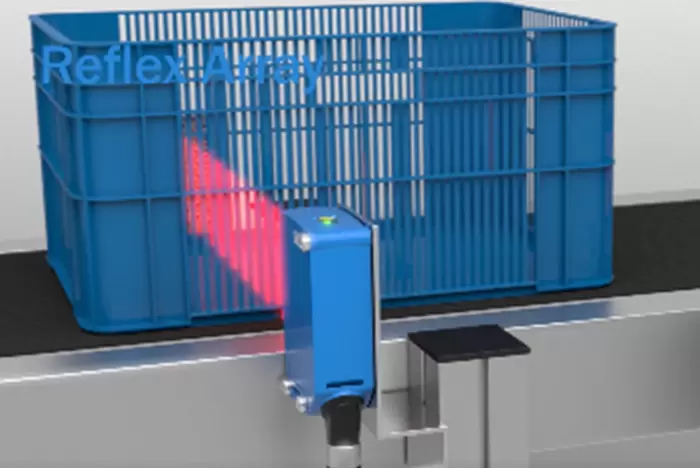 包裝箱外纏透明薄膜,產(chǎn)生去極化現(xiàn)象,影響傳統(tǒng)鏡面反射光電的接收端穩(wěn)定性