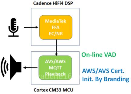 MediaTek Filogic 130A(MT7933)整合了獨立音頻數(shù)字信號處理器HiFi4 DSP,具有進(jìn)行回音消除AEC(Acoustic Echo Cancelling)和增強語音的遠(yuǎn)場處理(Far-Field Process)功能,能夠全方位符合語音控制的物聯(lián)網(wǎng)應(yīng)用Alexa Built-in裝置。