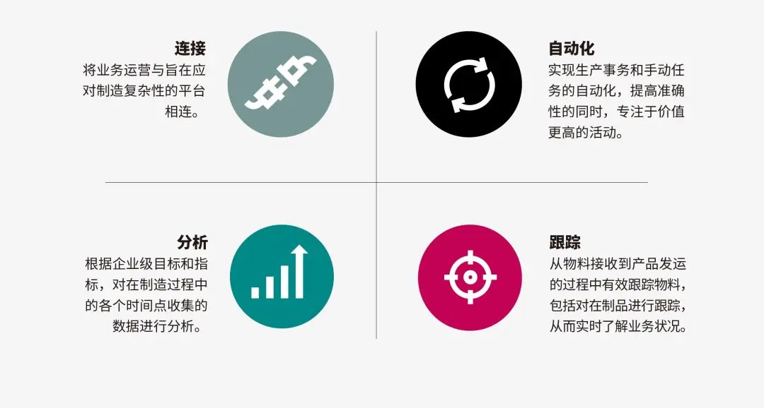 Plex 智能制造平臺還具有能夠幫助企業(yè)提升連通性、自動化水平和跟蹤精確性,并深化數(shù)據(jù)分析的能力,讓制造商可以更加全面、實時地了解整個生產(chǎn)生命周期,掌控工廠車間,并實現(xiàn)與 ERP 的全面連接。它能輕松實現(xiàn)無縫連接總部管理層與工廠,擁有任務(wù)自動化、數(shù)據(jù)共享、實時監(jiān)控、高分辨率追溯等功能。