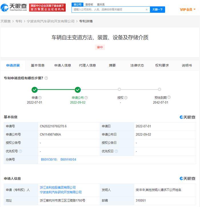 天眼查App顯示,近日,浙江吉利控股集團(tuán)有限公司、寧波吉利汽車研究開發(fā)有限公司申請(qǐng)的“車輛自主變道方法、裝置、設(shè)備及存儲(chǔ)介質(zhì)”專利公布。