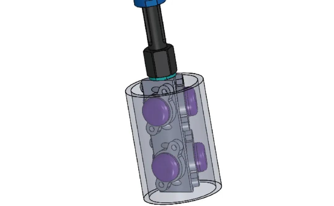 內(nèi)撐時(shí),當(dāng)抓取帶有孔洞物品時(shí),可以將氣囊模塊安裝在分氣塊上,實(shí)現(xiàn)內(nèi)撐式搬運(yùn)。